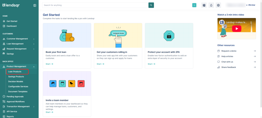 2. Navigate to Loan Products
