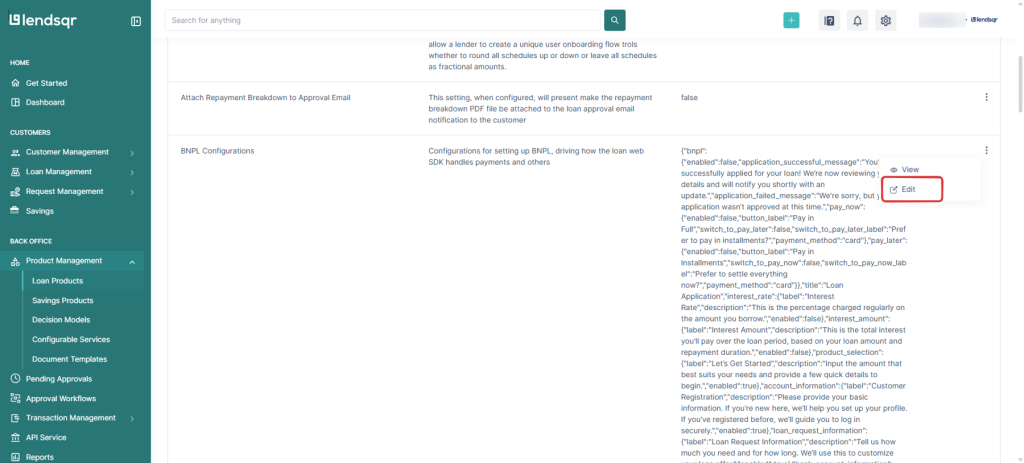 3. Create a new loan product or open an existing one