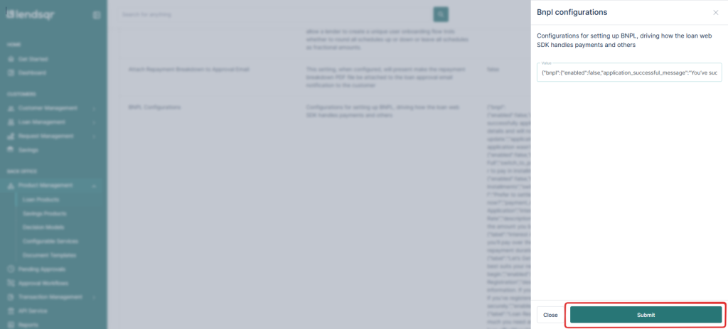 Follow these steps in the Admin Console to enable or update Buy-Now-Pay-Later (BNPL) for a loan product using the JSON you provided.