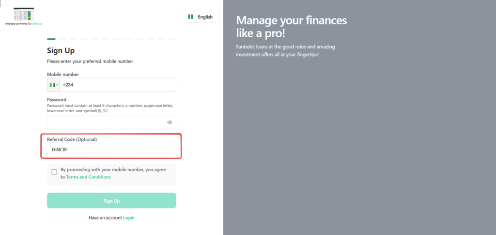 The customer enters the referral code while signing up on the web app. No extra steps after that.