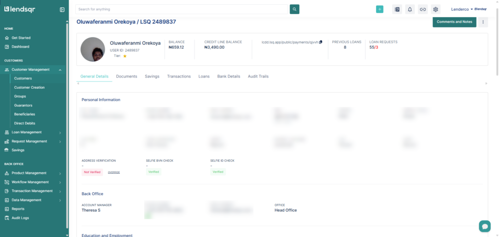 You’ll see the assigned account manager and branch already filled in.