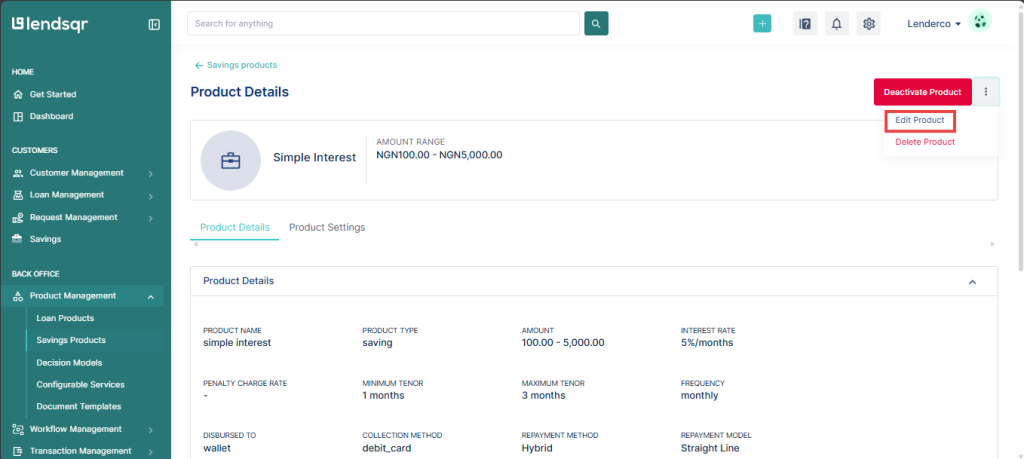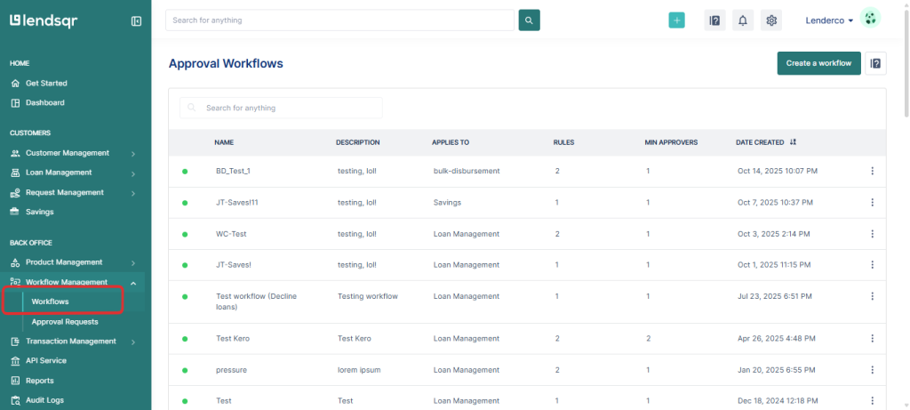 This ensures that any withdrawal request from a savings product follows a structured approval process, requiring authorization before funds are released. At Lendsqr, lenders can easily create and assign approval workflows to savings products, ensuring better control and repayment assurance.