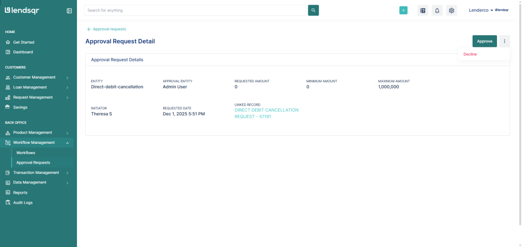 Approval workflows help ensure that sensitive actions such as canceling a customer’s direct debit mandate are properly reviewed before they are executed. By adding an approval workflow to mandate cancellations, your organization can maintain better internal control, prevent unauthorized actions, and keep a clear audit trail of all mandate-related decisions.