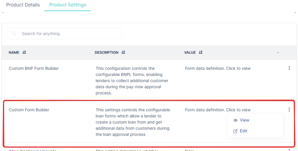 - Open an existing loan product or create a new one.
