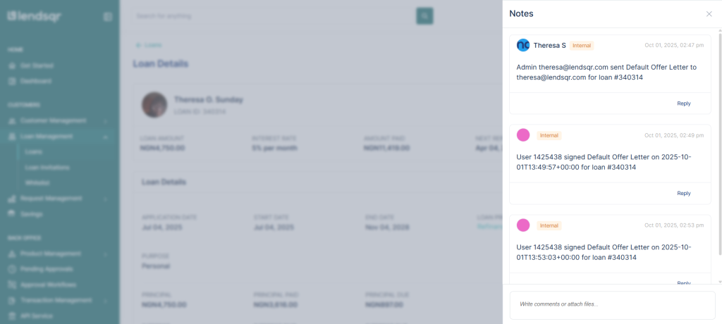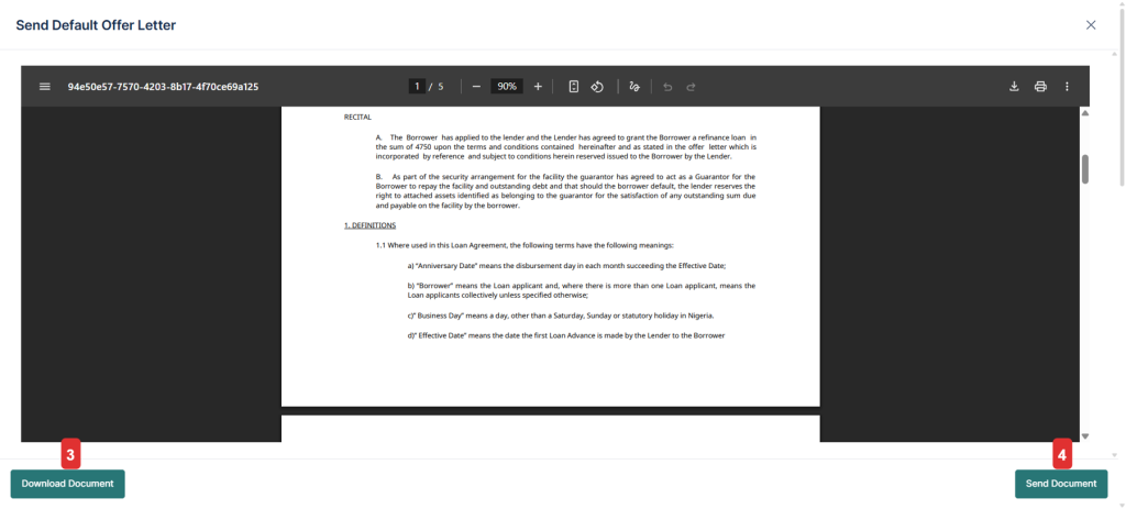 A customer applies for ₦8M but is approved for ₦6.5M after review. The initial offer letter no longer reflects the final decision. You can quickly generate a new offer letter from the Admin Console and send it to the customer for signing.