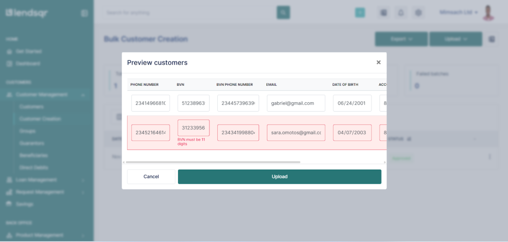 For lenders managing hundreds or thousands of users, manual customer registration becomes slow, repetitive, and prone to mistakes. Lendsqr’s bulk onboarding feature solves this by enabling you to upload an entire list of customers in one action.