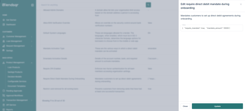 With this configuration updated, any new users signing up will have their mandate automatically set up as they onboard to borrow from you..