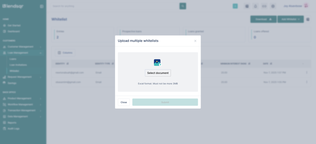 For example, if you’re launching a loan product for verified employees of a company, ask their HR to share a staff list with BVNs and other required fields. You can then upload this data and whitelist all qualifying employees at once. This gives them access to benefits like special interest rates, flexible tenors, or exemptions from requirements like guarantors.