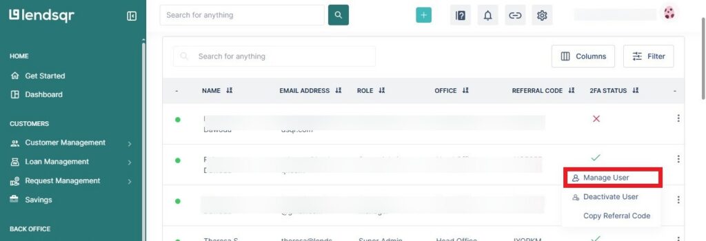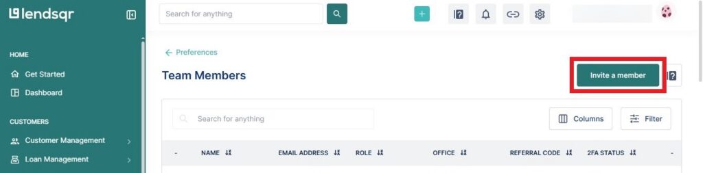 Team management refers to the set of tools in the Lendsqr admin console that lets you control who has access to your lending workspace and what they are allowed to do within it.